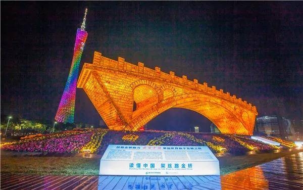 “一带一路”大型主题艺术景观《丝路金桥》受邀助力“读懂中国”在广州海心沙展出。图源:广州海心沙微信公号