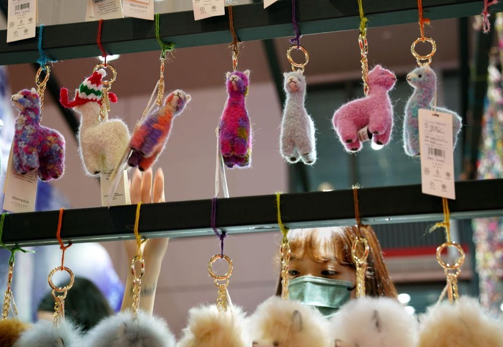 2021年11月7日,第四届中国国际进口博览会上,用秘鲁羊驼毛制作的挂件广受欢迎。