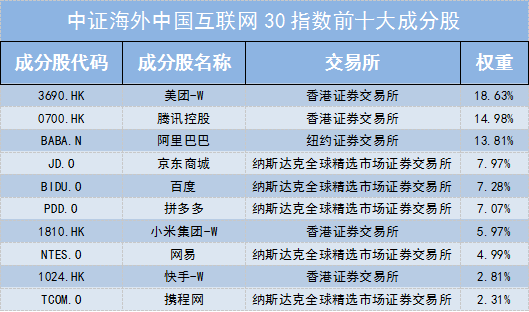 中国海外互联网30成分股龙头效应明显,权重覆盖合理