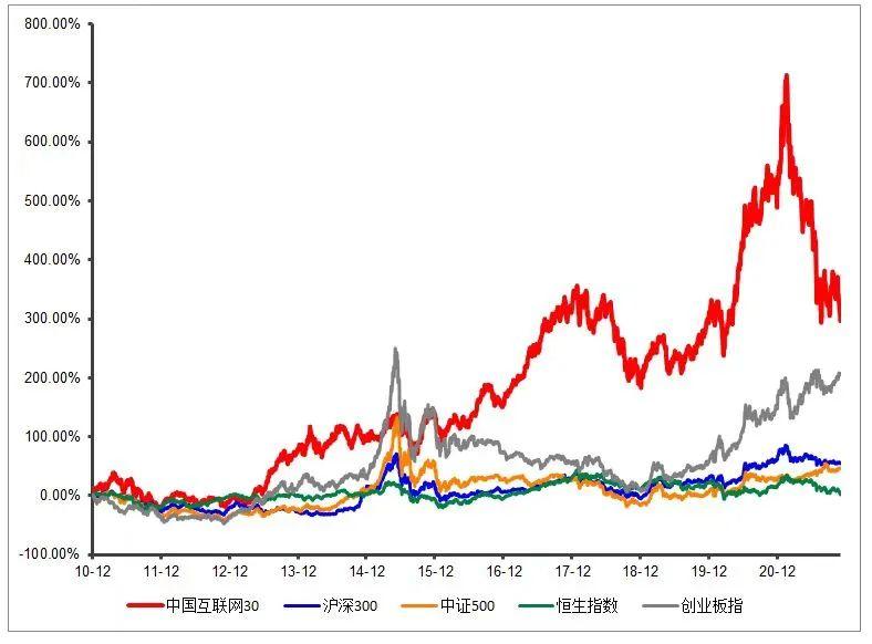 产品是否优秀,业绩是硬道理。2010年底以来,中概互联网30指数的区间涨幅为291.41%,年化收益率为12.78%,大幅超越同期沪深300、创业板指、中证500、恒生指数等市场主要宽基指数。(数据来源:Wind,2010.12.31-2021.11.30)