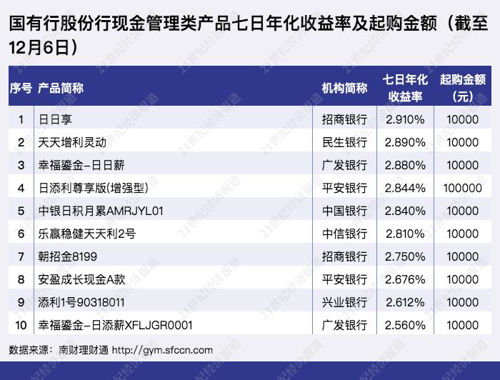 一、国有行股份行现金管理类产品收益表现(截至12月6日)