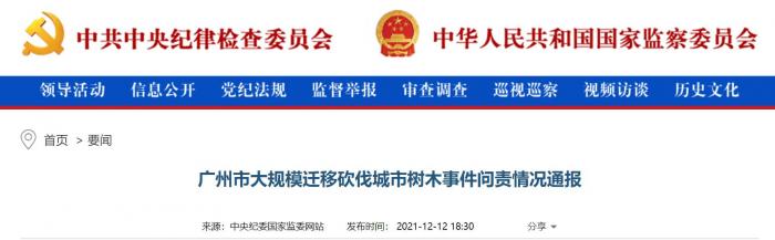 中央纪委国家监委网站消息,根据广东省委部署,省纪委监委成立广州市大规模迁移砍伐城市树木事件问责调查组,对相关单位和人员存在的履职不力、失职失责问题进行深入调查。坚持依纪依法、实事求是,坚持失责必问、问责必严,坚持科学精准、宽严相济,对10名领导干部严肃问责: