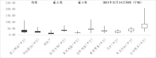 2021年春节以来消费板块的估值出现了明显的下降,与通胀相关的必需消费品估值回到历史中枢区间,以每年15%-20%的稳健增长去看,临近年底投资者开始兑现2022年的估值切换逻辑;而与地产更相关的可选消费基本处在历史估值的“底部区域”。