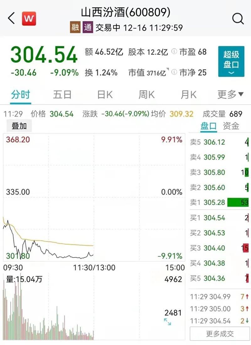 山西汾酒早盘走势