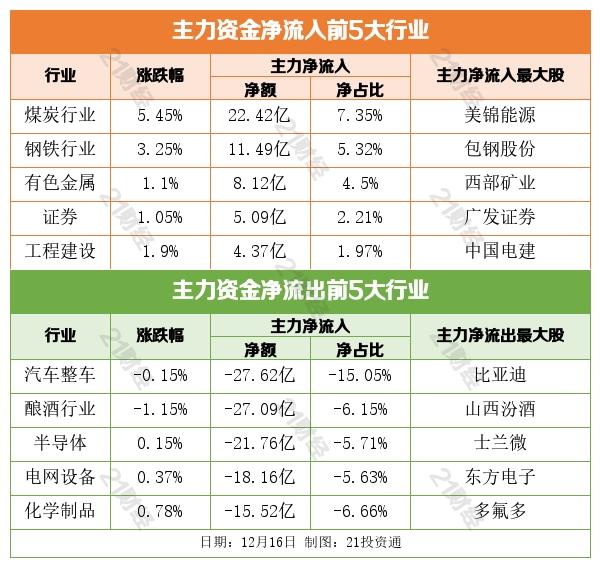 12月16日,A股三大股指集体收涨,市场继续缩量。盘面上,大周期的煤炭和钢铁领涨行业板块;概念板块方面,氢能源、元宇宙概念、工业母机等板块领涨;仅数字货币和白酒两个行业板块跌幅超过1%。