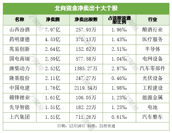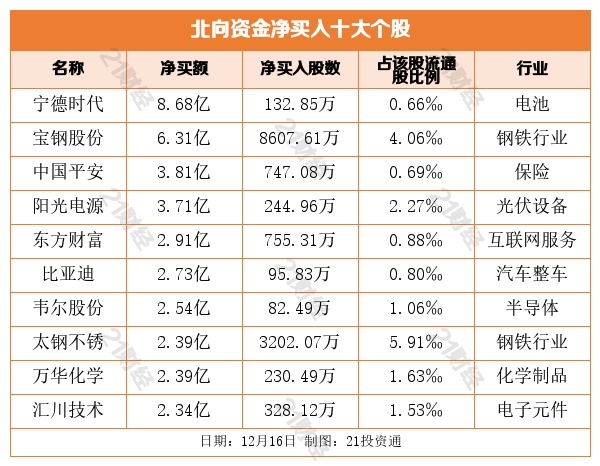 个股方面,北向资金净买入宁德时代(300750.SZ)、宝钢股份(600019.SH)、中国平安(601318.SH)、阳光电源(300274.SZ)、东方财富(300059.SZ)居前,净卖出山西汾酒(600809.SH)、药明康德(603259.SH)、兆易创新(603986.SH)、国电南瑞(600406.SH)、潍柴动力(000338.SZ)居前。
