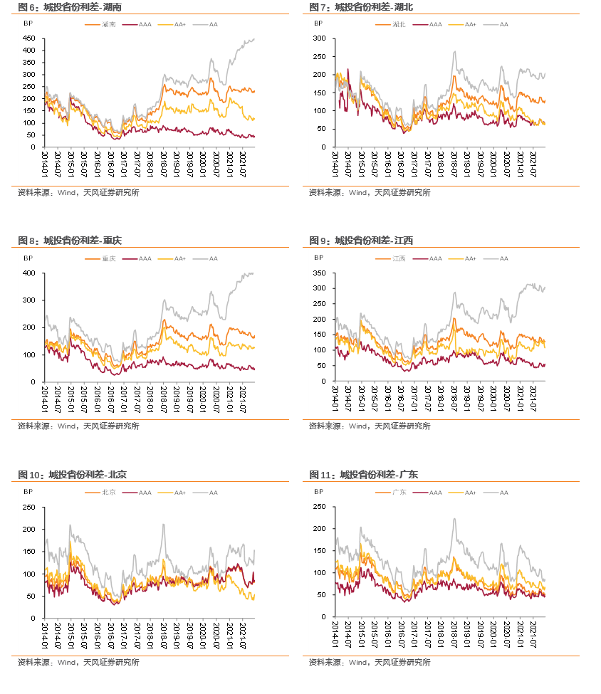 分省份信用利差情况