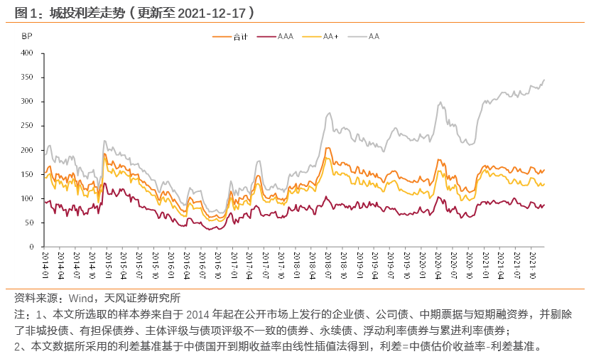 12月17日,城投债整体利差为159.31bp,与12月10日比,上行3.18bp。分评级来看,AAA、AA+、AA城投债整体利差分别为87bp、130.04bp、345.5bp,与12月10日比,AAA、AA+、AA城投债整体利差分别上行2.31bp、3.10bp、4.09bp。