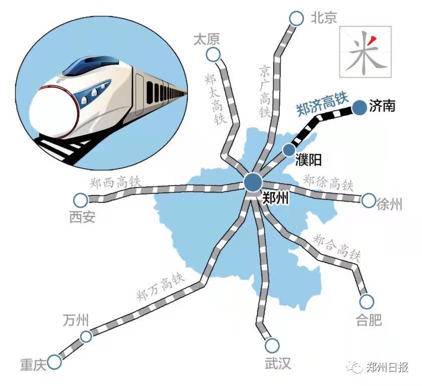 郑州“米字型”高铁示意图 图片来源:郑州日报