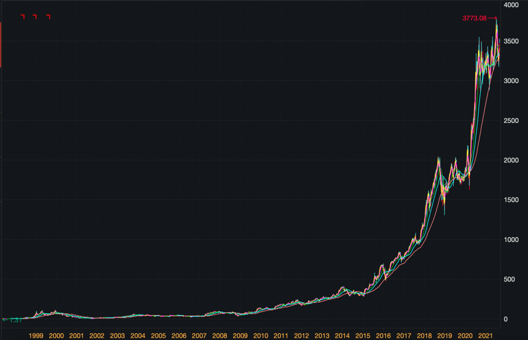 每年给股东信,贝索斯都会强调“长期主义”。即便在2000年,因为互联网泡沫破灭,亚马逊股价大跌80%。贝索斯也仍然着眼长期,在《2000年贝佐斯致股东信》中他说到: