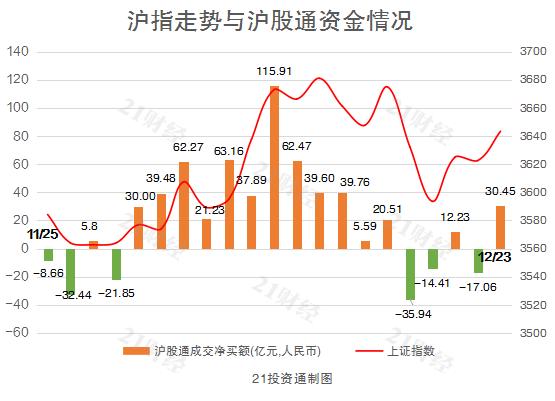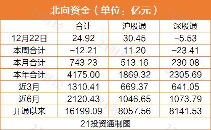 北向资金结束连续4天净流出的态势,今日合计净买入24.92亿元,其中沪股通净买入30.45亿元,深股通净卖出5.53亿元。