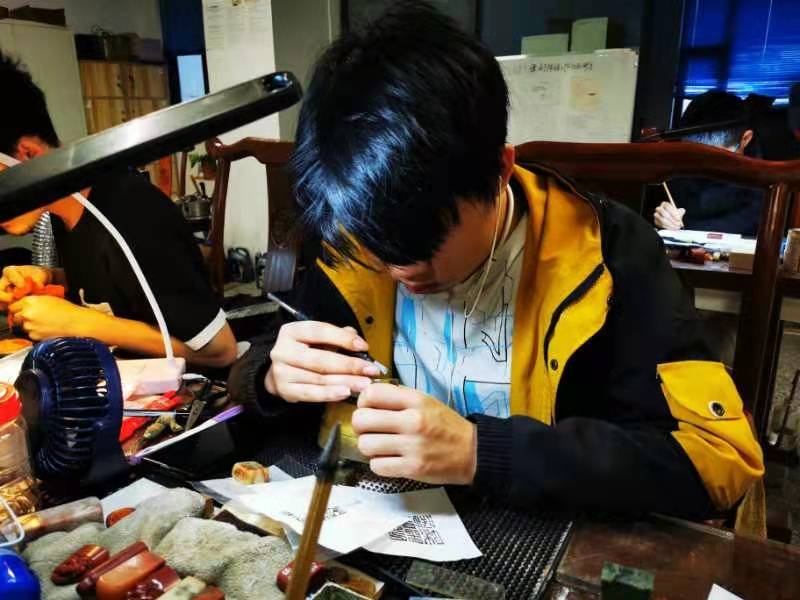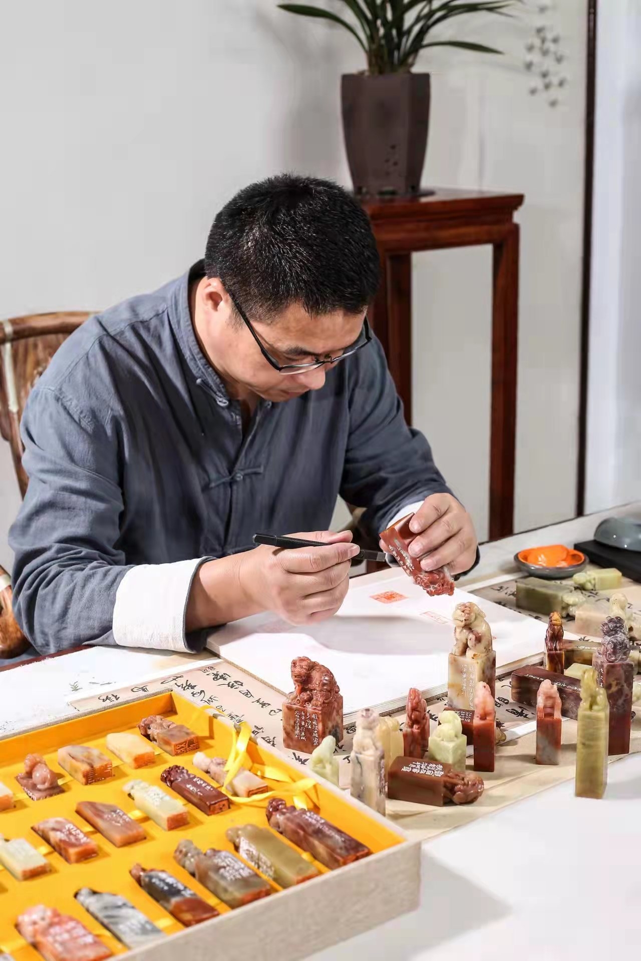 牧心印社社长、篆刻项目非遗传承人洪四海介绍称,金石篆刻是我国传统文化当中一门古老的技艺,最早源自于甲骨文,经过历代书法篆刻家的传承,绵延至今,已有3000多年的历史。他说,接到篆刻任务后,组织社员满怀激情地投入到印章设计工作中,通过不断通读《百年扬帆》书稿,深刻领悟到广东党组织在中国共产党的坚强领导下,始终走在时代前沿,冲锋在前,奋勇争先,为百年党史广东实践写下可歌可泣的壮丽诗篇。这些感悟,为篆刻艺术的创作带来丰富的设计灵感。在牧心印社多位篆刻师集体讨论、构思、篆稿、再构思、再篆稿,终于在几易其稿之后设计篆刻出了这18方印章。洪四海认为《百年扬帆》中采用印章设计,为主题出版与篆刻艺术的融合提供了一次有益的尝试。