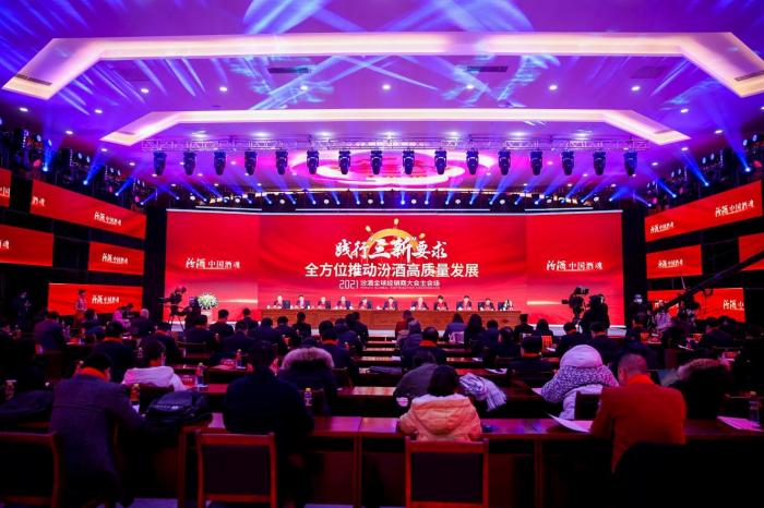 由于疫情防控的需要,今年,汾酒的年度经销商大会改为线上加线下互动形式举行,除在山西杏花村汾酒厂设主会场外,广州、南京、天津、重庆、郑州、内蒙古等全国各地设立了10个分会场,共上千名经销商与会。