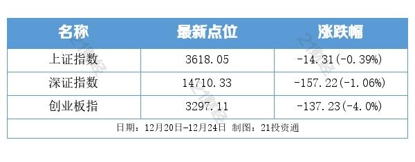 过去一周,A股三大股指震荡走弱,当周收盘齐收跌。沪指周跌0.39%,深成指报周跌1.06%,创业板指周跌4%。