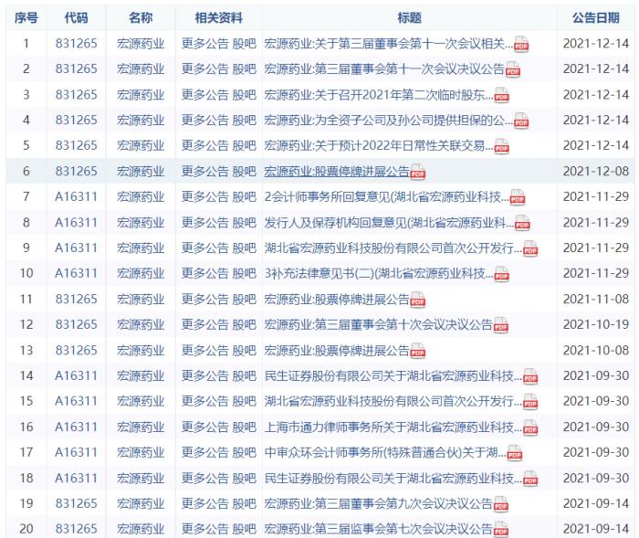 此次因准备创业板上市,宏源药业向新三板申请,公司股票自 2021年6月22日起开始停牌,公司上市申请被受理已长达半年,宏源药业仍未公示新三板摘牌计划,并至今仍在新三板正常披露公司上市等重大事项。