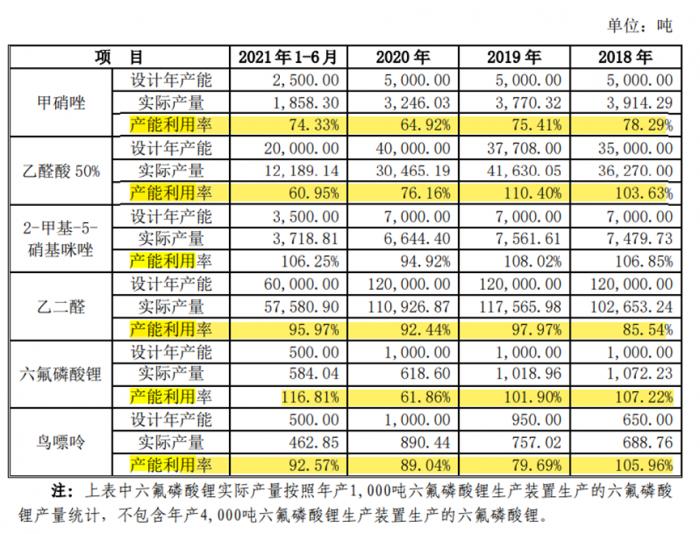 21世纪经济报道记者发现,事实上,宏源药业在2018年至2021年上半年报告期内的主营产品产量并没有实现大幅增长,公司实现营收和业绩高增长更多的因素是受原材料价格下降和公司产品提价的影响。