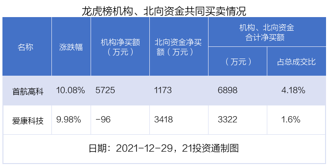 值得注意的是,机构和北向资金共同净买入了首航高科等1股;在爱康科技上出现分歧,机构净卖出爱康科技95.92万元,北向资金净买入3417.53万元。