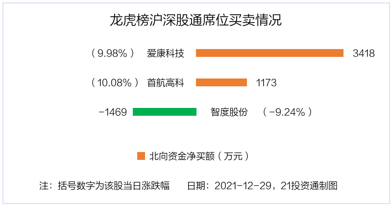 12月29日,北向资金参与龙虎榜中的个股共有3只,合计净买入3122.16万元,均为深股通席位。
