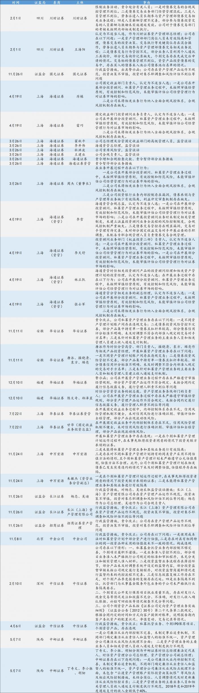 除了海通证券,我们观察到其他接收到监管函的券商,监管部门关注的违规点较为集中在两方面——第一是私募产品运作、投资等方面的合规情况;第二是资管部门或子公司的人事管理合规情况。