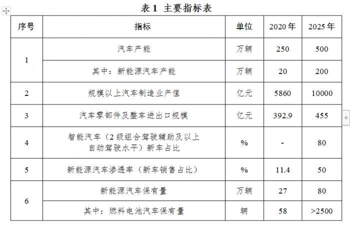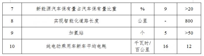 ——自主创新实现新突破。加大智能与新能源汽车自主创新支持力度,力争攻克一批短板和“卡脖子”技术。智能汽车(2级组合驾驶辅助及以上自动驾驶水平)新车占比达到80%。纯电动乘用车百公里电耗降至12.0千瓦时,推出具有自主核心技术的燃料电池乘用车。