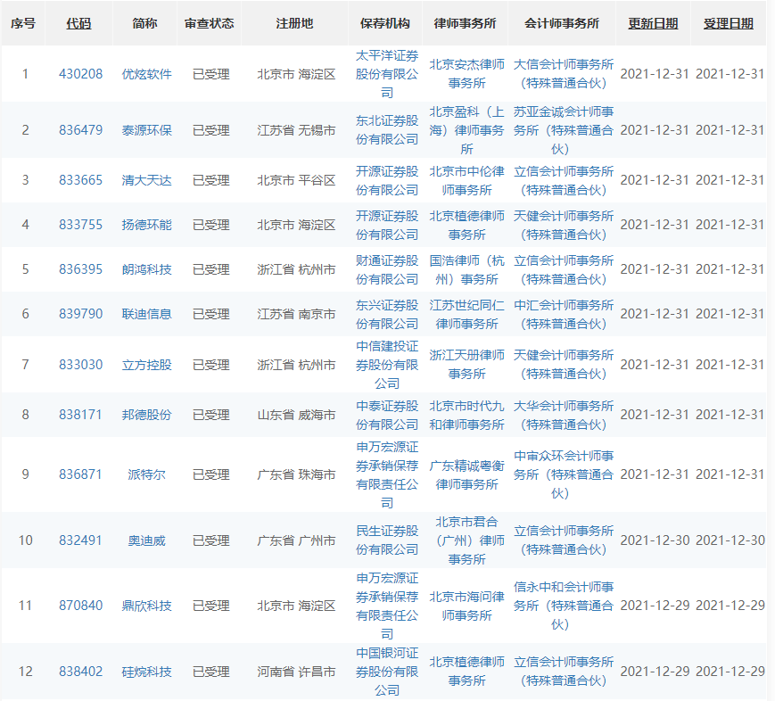 此前,12月29日北交所受理3家上市申请,12月30日受理2家。连续3日累计受理12家企业。