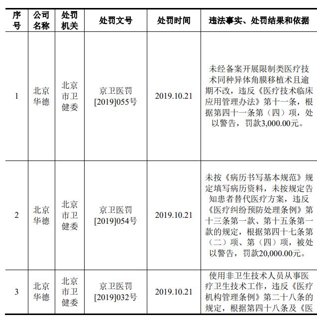 (图说:普瑞眼科北京华德医院多次被罚,图片来自招股书)