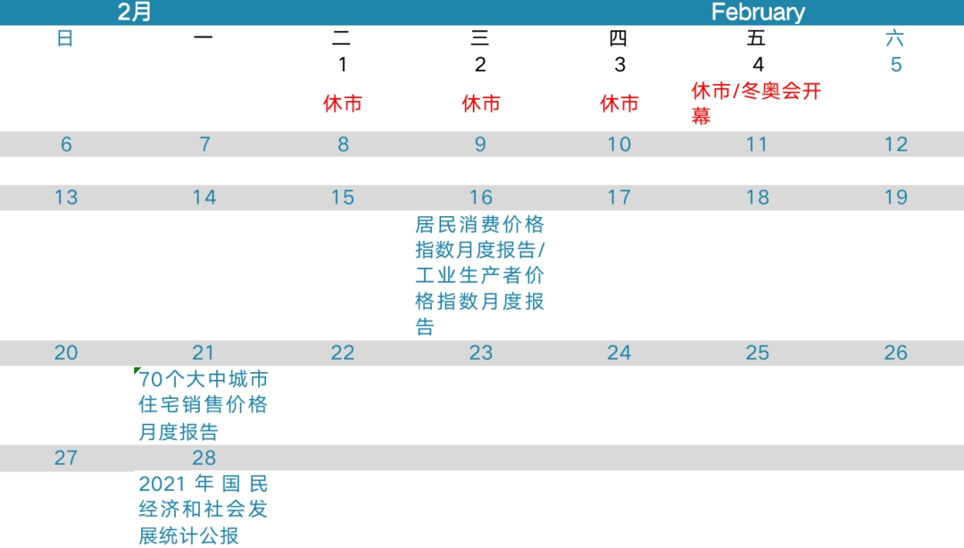 2022年资本市场走势同样值得期待,投资者可通过关注定期公布的经济数据、重要会议以及产业大事件等信息辅助决策。
