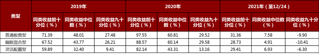 2021年权益类公募赚钱效应降低(%,2019年至2021年)