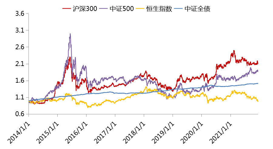 股、债基础市场长期走势(截至2021/12/24)