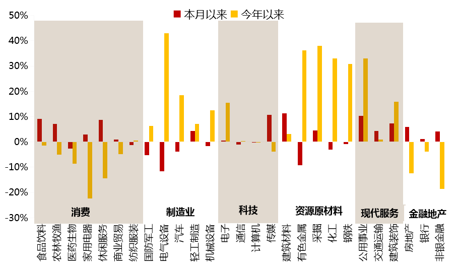本月及今年各行业表现(截至2021/12/24)