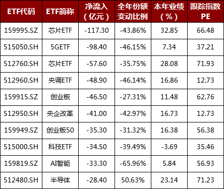2021年ETF资金净流出居前品种(截至2021/12/24)