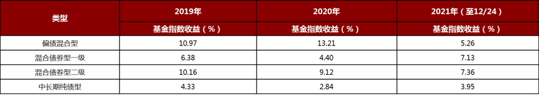2021年偏债类公募收益差异缩小(%,2019年至2021年)