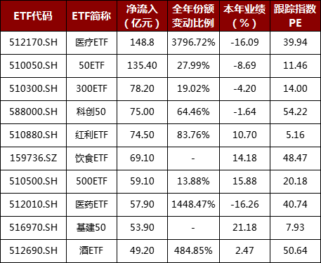注:资金净流入金额受区间内每日价格影响,因此与份额变动方向或有差异