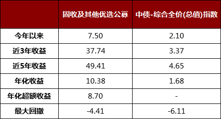 固收及其他公募优选长期业绩表现(%,截至2021/12/31)