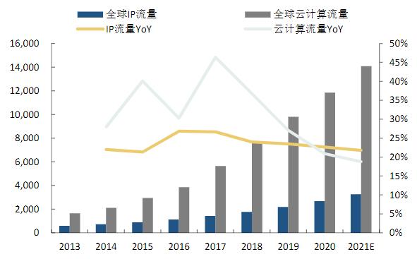 全球数据中心流量增长情况 来源:IDC圈,东吴证券