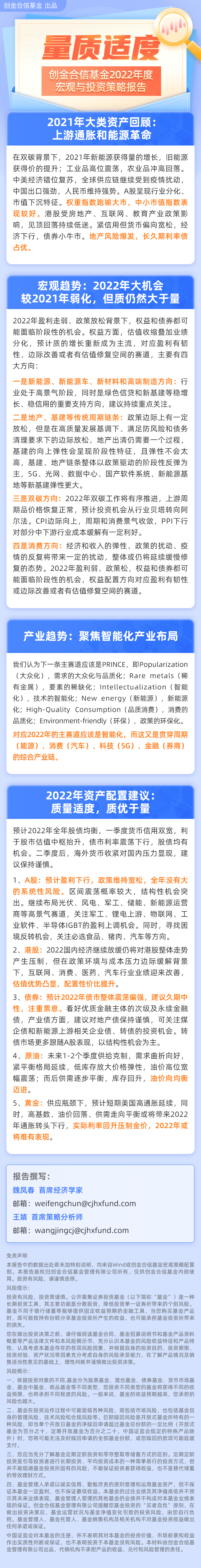#首席观点#@创金合信基金 2022年度宏观与投资策略报告:量质适度。