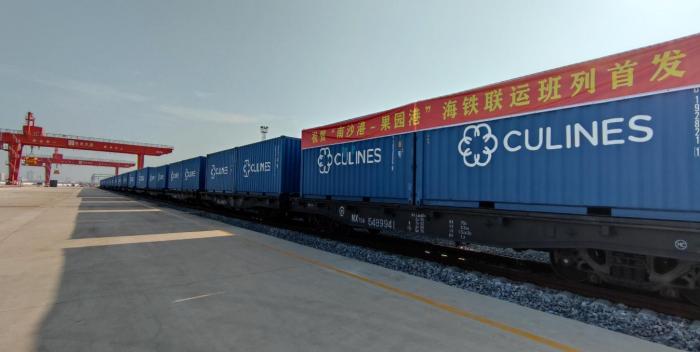 近日,伴随着一声嘹亮的火车汽笛,在广州南沙港铁路站现场,一列满载货物的列车缓缓驶出,发往重庆果园港。这标志着南沙港铁路正式开通运营,也标志着“南沙港—果园港”海铁联运班列完成首发。