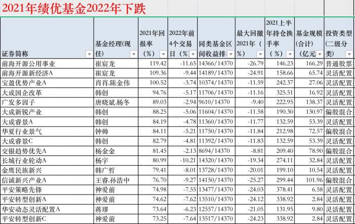 去年绩优基金大多重仓新能源和周期股,今年普跌。