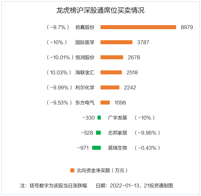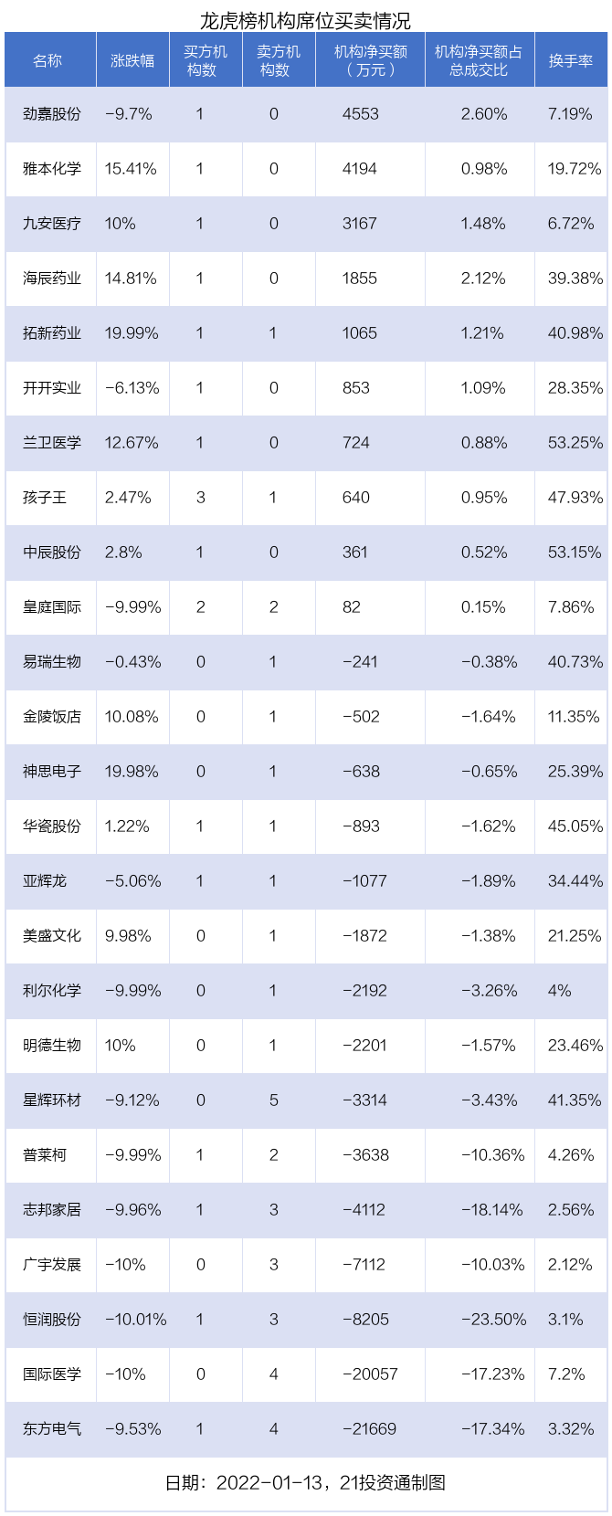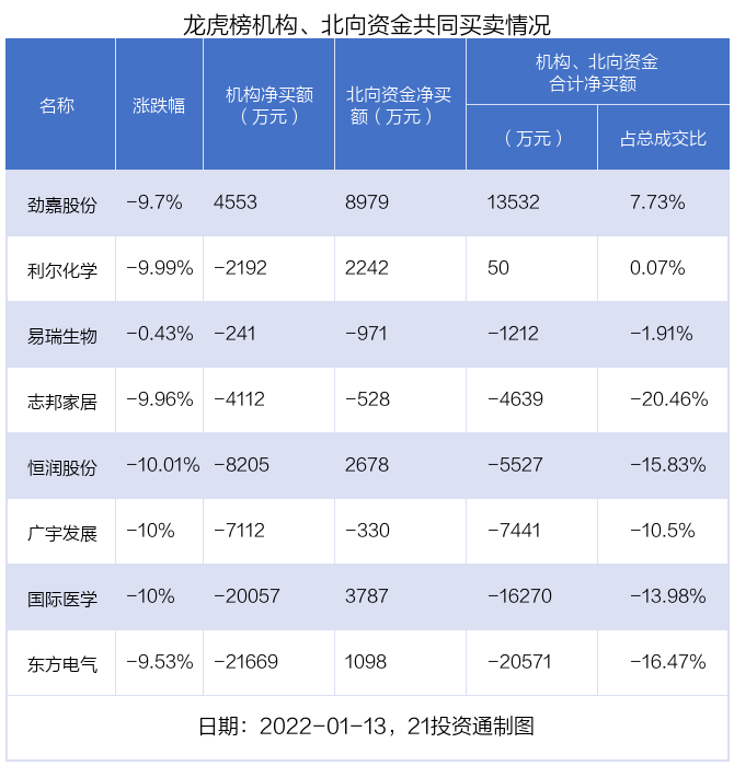 1月13日,25只个股龙虎榜出现了机构的身影,机构合计净卖出6.02亿元。具体来看,机构净买入10股,净卖出15股。