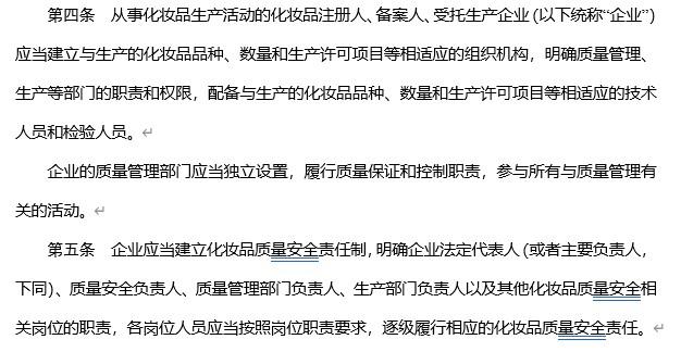 同时,为明确质量安全管理的责任主体、追责到人,《规范》还提出,质量安全负责人和质量管理部门负责人不得兼任生产部门负责人。也就是说,质量管理部门的独立性得到保障,生产与监督分离,质量安全负责人作为独立的个体,监督化妆品企业的产品质量安全及生产管理。