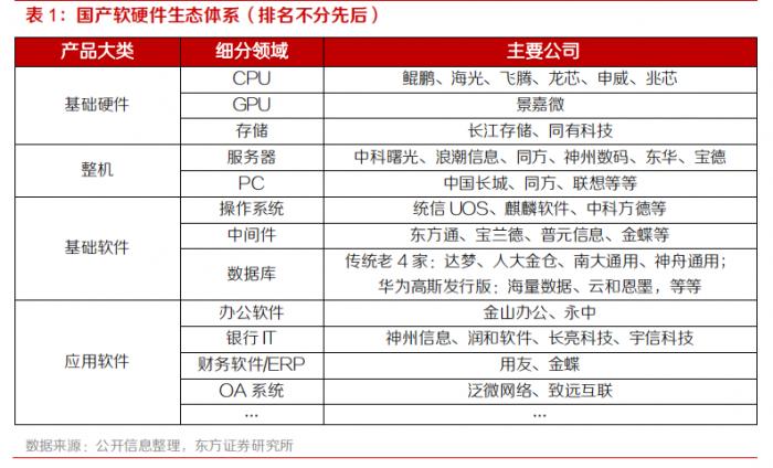 华为三大基础开源社区:高斯、欧拉、鸿蒙,均开始积累相应的生态伙伴和典型的产业落地案例。东方证券认为,这其实是整个国产软硬件产业群体逐渐朝着规模化、标准化和集群化发展的缩影。“十四五”期间将是信创战略进一步推广的重要阶段,国产基础软硬件的生态环境有望不断趋于完善。而且,在相关政策的引导下,经过前期的探索和积累,国产软硬件产业形成了整体推进的局面:国产芯片的性能已经足够强大,而中间件、数据库、办公软件、行业应用软件,也涌现了一批优秀的国产企业,未来有望走向规模化、集群化发展。