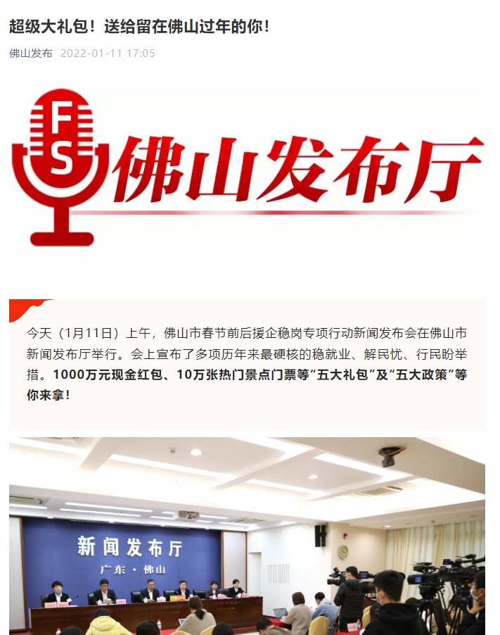 为鼓励异地务工人员留在佛山过年,佛山形成“五大礼包”: