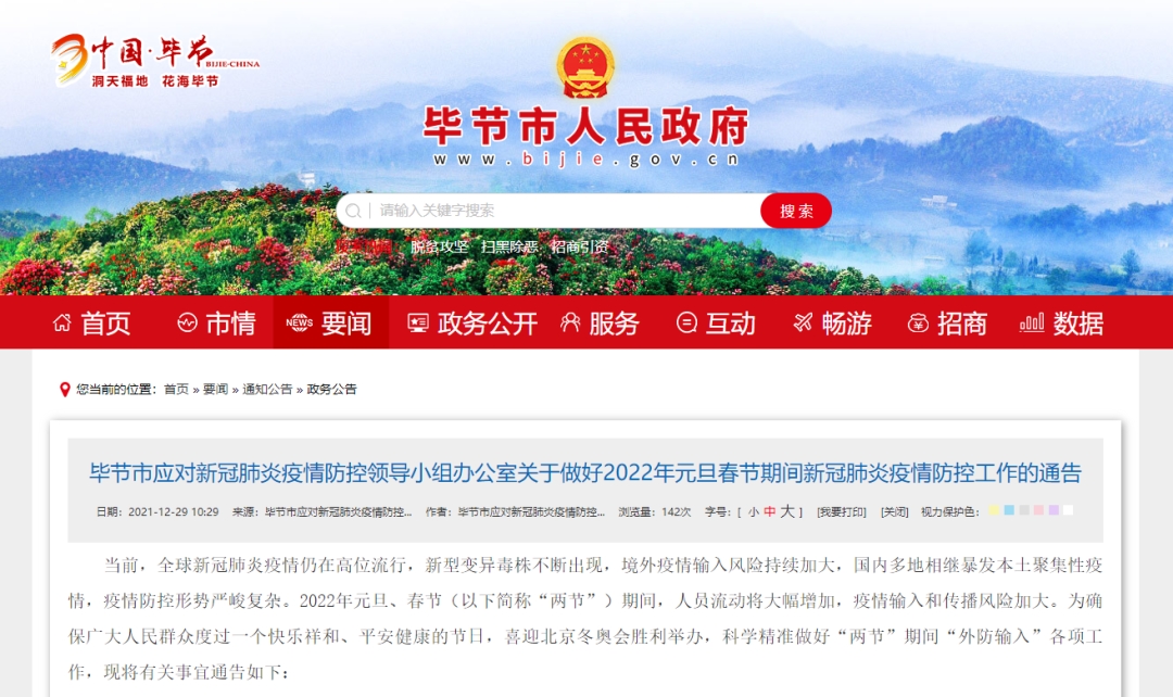 《毕节市应对新冠肺炎疫情防控领导小组办公室关于做好2022年元旦春节期间新冠肺炎疫情防控工作的通告》中提到,鼓励外出人员就近就地过节,减少人员跨区域流动数量,对在毕未返乡就近就地过年人员给予适当补贴或慰问,做好因疫情滞留人员防控管理。