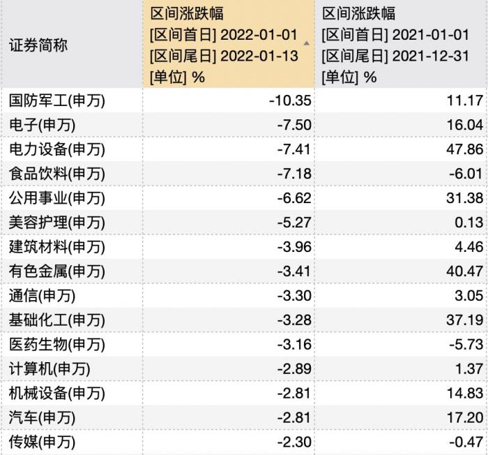 总体来看A股风格从小盘股切换至大盘股,去年火热赛道军工、新能源、半导体跌幅居前,而食品饮料很不幸,去年下跌,今年继续下跌。