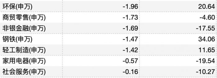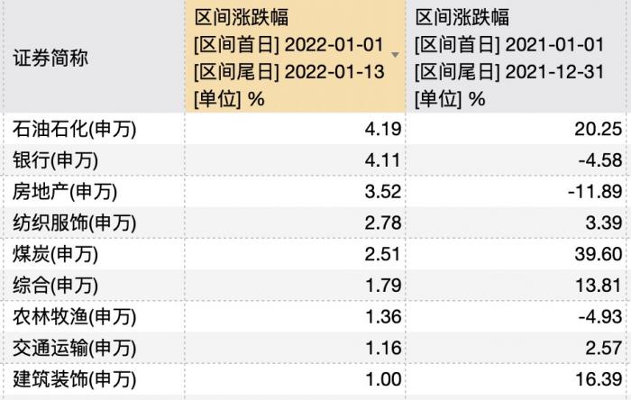 上涨的主要是石油石化、银行、房地产、纺织服饰、煤炭,分别上涨4.19%、4.11%、3.52%、2.78%、2.51%。