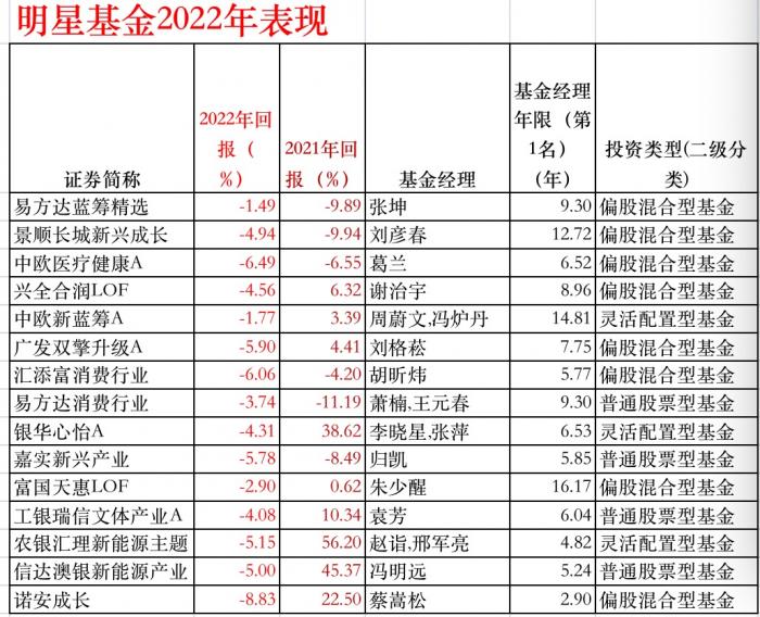 今年顶流明星基金经理们表现全部为负。