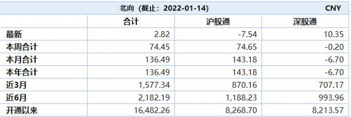 据21投资通(微信号ID:touzit21)智能监测,1月14日,北向资金净买入2.82亿元,结束1月13日净卖出态势,此外本周三(1月12日)当日净买入超过70亿元。