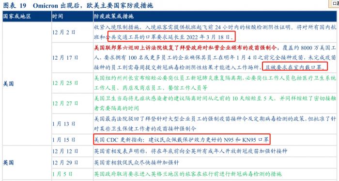 应对奥密克戎,欧美政府收紧防疫措施,加大口罩等的采购。随着疫情的快速扩散,全球口罩防疫用品或将出现大规模采购潮。