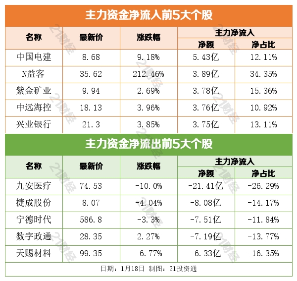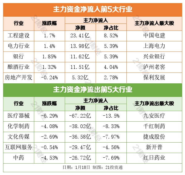 据21投资通(微信号ID:touzit21)智能监测,1月18日,北向资金净买入23.35亿元,连续3日净买入。其中沪股通净买入42.95亿元,深股通净卖出19.6亿元。