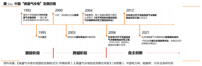 高温气冷堆商用在即。①2021年9月石岛湾项目达到临界状态。2021年9月12日,华能石岛湾高温气冷堆核电站示范工程 1 号反应堆首次达到临界状态,机组正式开启带核功率运行,标志着全球首座四代核电石岛湾高温气冷堆临界。②2021年12月高温气冷堆核电机组成功并网发电,标志着全球首座具有第四代先进核能系统特征的球床模块式高温气冷堆实现了从“实验室”到“工程应用”质的飞跃,我国实现了高温气冷堆核电技术的“中国引领”。